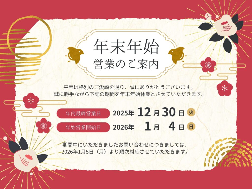 年末年始休業のお知らせ